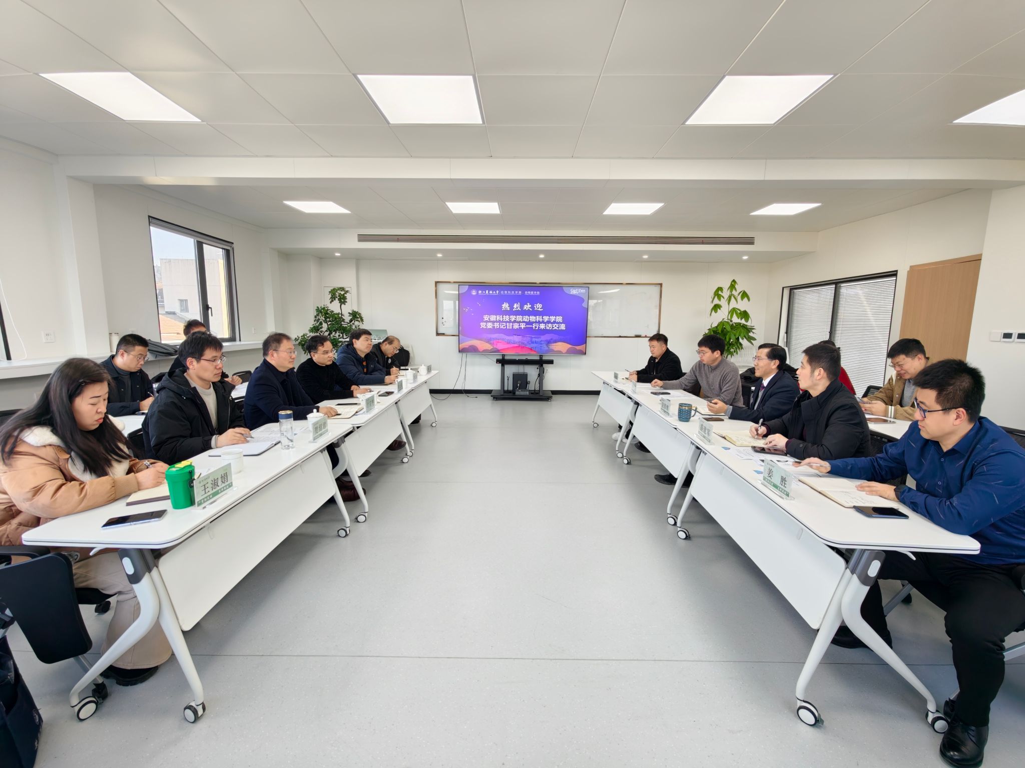 1月10日,安徽科技学院动物科学学院党委书记甘宗平、副院长(主持工作)周金星一行到动科动医学院调研,浙江农林大学副校长宋厚辉参加交流,会议由学院党委书记盛建军主持。