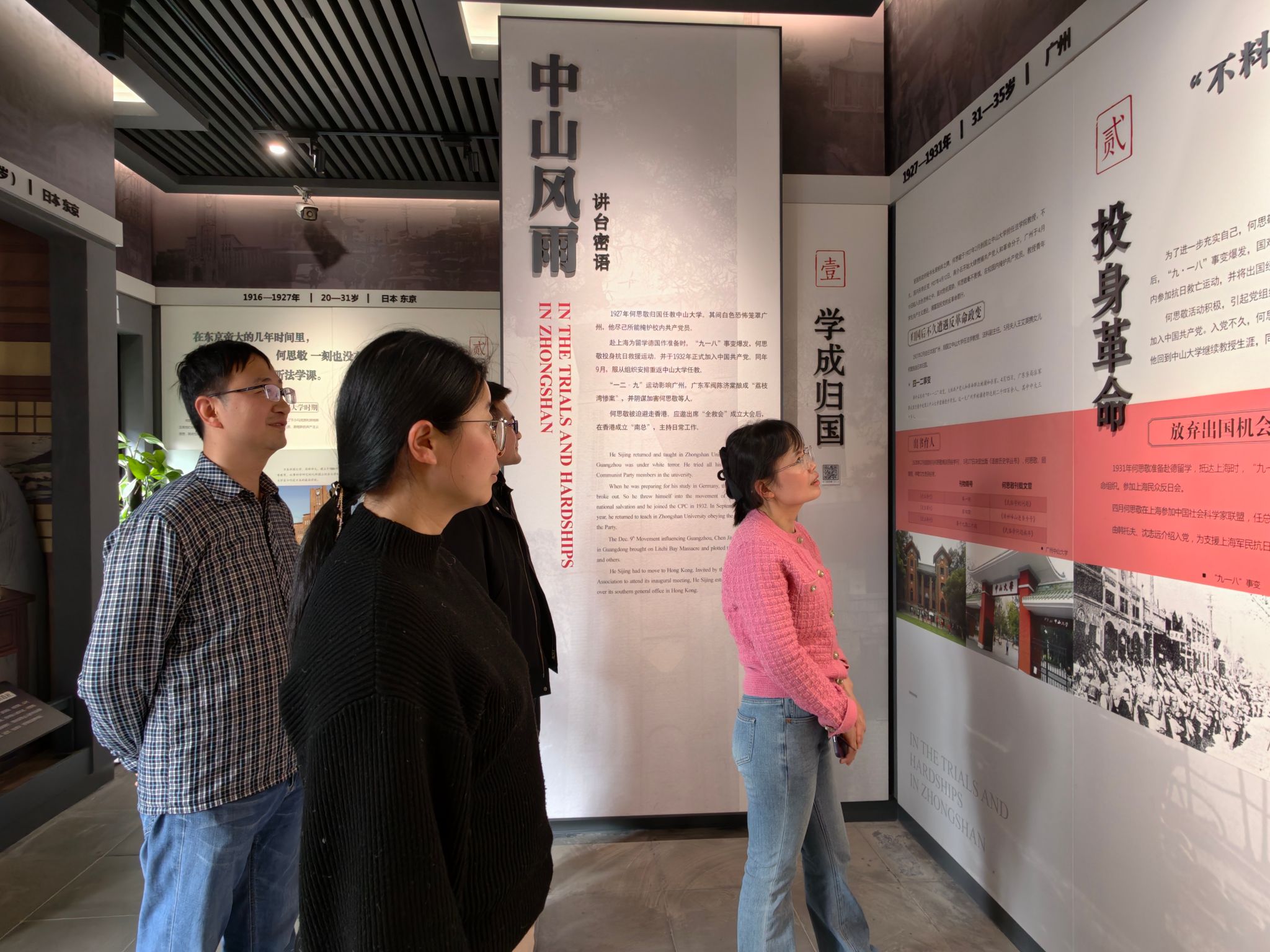 纪念馆主展厅通过3大板块、7个单元,完整展示了何思敬求学、奋斗、博学的一生。教师们通过手稿与影像资料,深入了解这位“红色法学泰斗”——从少年时期接受革命启蒙,到在中山大学讲台上以“经济学”“方法论”为掩护传播《资本论》与唯物辩证法等马克思主义真理;从在延安窑洞为毛泽东同志翻译讲授《战争论》,到参与重庆谈判、参与起草《共同纲领》和新中国首部宪法。何思敬以“有正义感、有勇气、有学问”的治学育人品格,赢得了毛泽东同志“全国第一流的法学家”的高度赞誉。